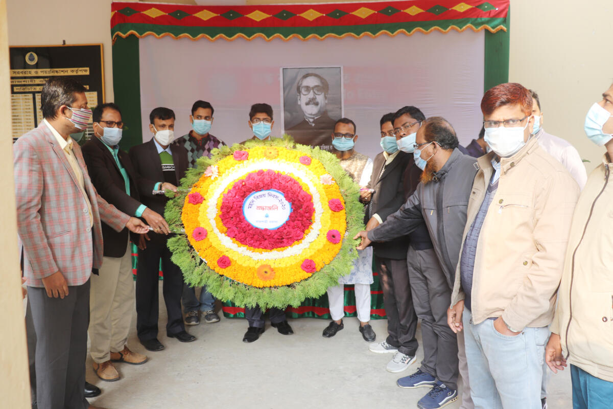 • স্বাধীনতার মহান স্থপতি জাতির পিতা বঙ্গবন্ধু শেখ মুজিবুর রহমানের ৪৬তম শাহাদত বার্ষিকী ও জাতীয় শোক দিবস ২০২১ উপলক্ষ্যে রাজশাহী ওয়াসার আয়োজনসমূহ