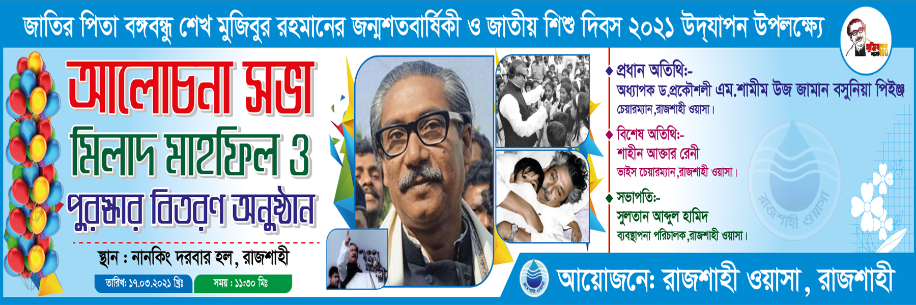 • স্বাধীনতার মহান স্থপতি জাতির পিতা বঙ্গবন্ধু শেখ মুজিবুর রহমানের ৪৬তম শাহাদত বার্ষিকী ও জাতীয় শোক দিবস ২০২১ উপলক্ষ্যে রাজশাহী ওয়াসার আয়োজনসমূহ