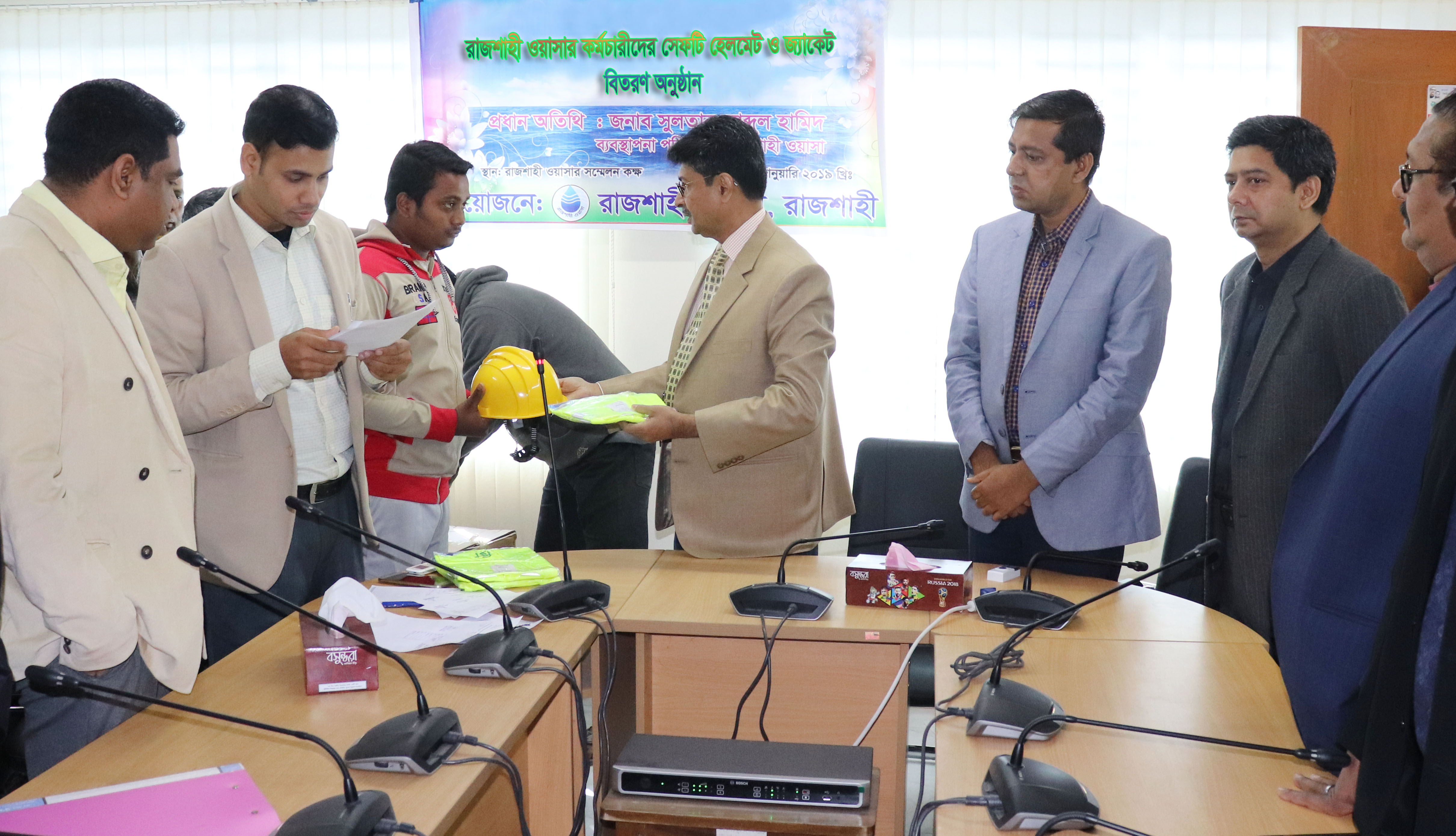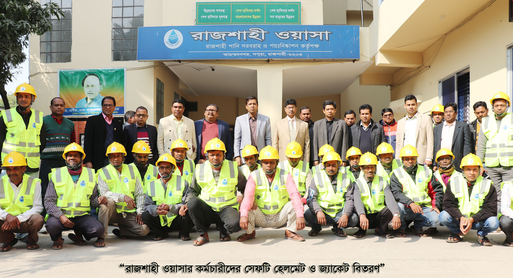 “রাজশাহী ওয়াসার কর্মচারীদের সেফটি হেলমেট ও জ্যাকেট বিতরণ”