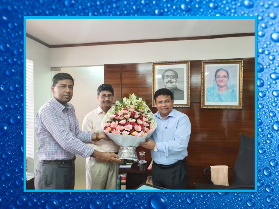 রাজশাহী ওয়াসার সকল কর্মকর্তা ও কর্মচারীদের পক্ষ থেকে স্থানীয় সরকার বিভাগে সদ্য যোগদানকৃত সচিব, জনাব হেলালুদ্দীন আহমদ কে ফুলেল শুভেচ্ছা ও অভিনন্দন জানাচ্ছেন রাজশাহী ওয়াসার ব্যবস্থাপনা পরিচালক জনাব সুলতান আব্দুল হামিদ।