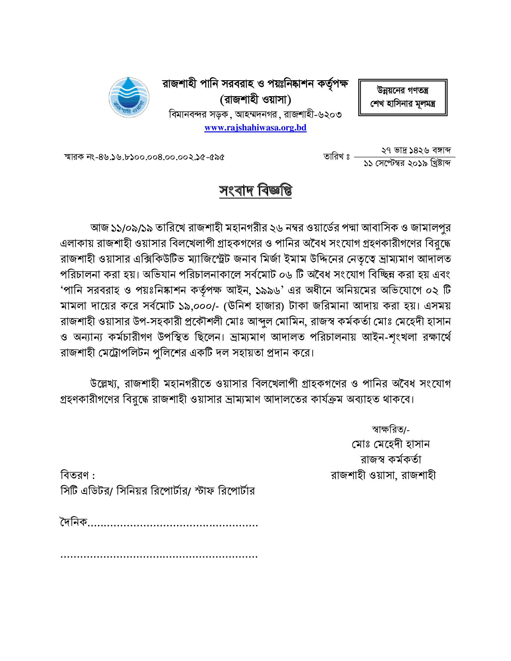 © 2018 Rajshahi WASA, Government of the People's Republic of Bangladesh. All rights reserved. Powered by: raj ITraj IT Solutions Ltd.